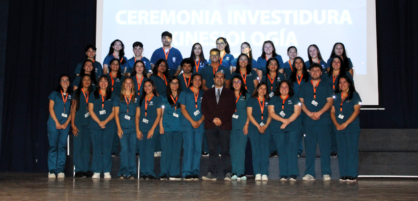 34 estudiantes de Kinesiología vivieron un momento trascendental en su formación profesional.  Los recién investidos asumieron el compromiso de iniciar sus prácticas clínicas, marcando así el fin de su etapa académica.