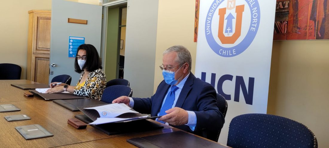 El acuerdo se concretó este lunes con la presencia de los representes de IFMSA UCN, Antonia Castillo, presidenta y Joaquin Ansieta, oficial local de intercambios de investigación, además de Osvaldo Iribarren, Decano de la Facultad de Medicina UCN.