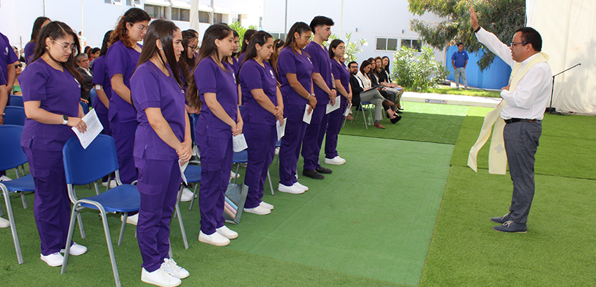 “Me comprometo a ser fiel a mi vocación, a realizar bien mi tarea y no olvidar la oportunidad que la vida me ha concedido de obtener una adecuada formación intelectual, a no malgastar ni desaprovecharla, y a devolver a la sociedad el bien recibido para forjar un mundo más justo, más solidario, más libre, digno y armonioso y con mayor prosperidad para todos”, fue parte del compromiso asumido por 22 estudiantes de Nutrición y Dietética en la ceremonia de investidura realizada en pasado 13 de enero.