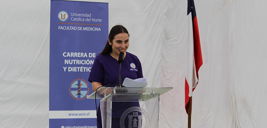 “Gracias al apoyo y contención de nuestras familias, logramos salir adelante, y sabemos que esas personas que hoy están aquí junto a nosotros están mirándonos llenos de dicha y orgullo. Hoy finalmente llegamos a puerto, nos bajamos de nuestro barco de estudiantes de Nutrición y Dietética, y pisamos tierra firme como internos de nutrición y dietética de la Universidad Católica del Norte. Nos queda el último camino, el último desafío para finalmente encontrar nuestro tesoro”, explicó la estudiante Valeria Núñez Gómez.